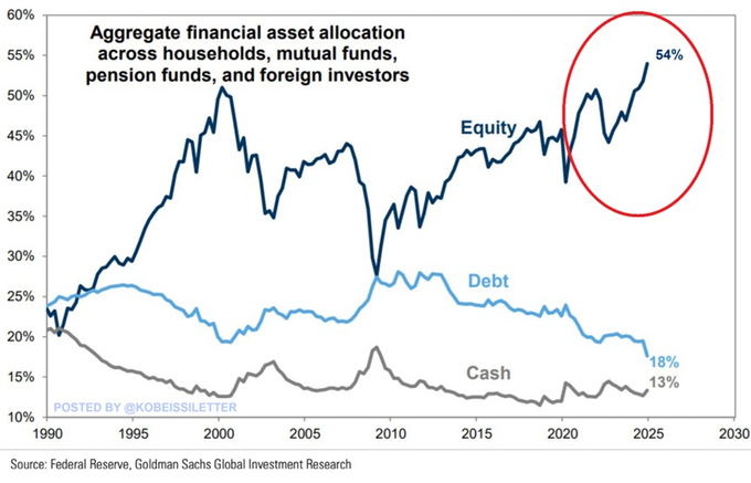 Si el presidente realmente está “comenzando” con sus planes, su tolerancia a una mayor debilidad del mercado de valores podría ser bastante alta. Sin embargo, la amenaza de una caída del mercado tiene implicaciones económicas reales: la inversión en acciones de los hogares como proporción de sus activos totales está en un nivel récord.