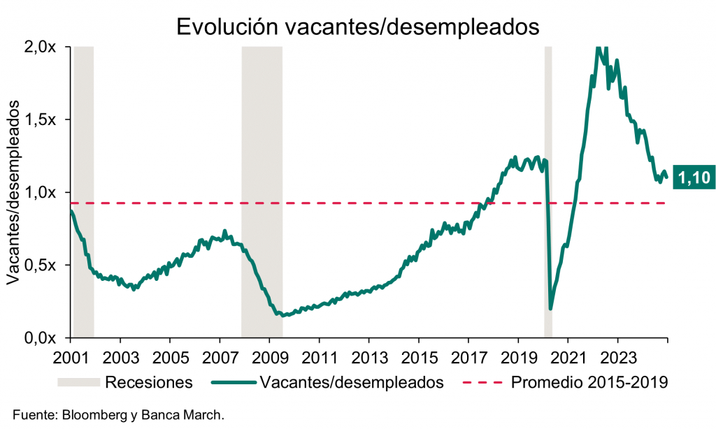 Ahora, los tipos se encuentran en modo de espera. El debilitamiento de las perspectivas de crecimiento aumenta las expectativas de recortes, pero con el aumento de las expectativas de inflación y los recuerdos recientes del crecimiento disparado de los precios, la Fed podría inclinarse por la cautela y mantener altos los tipos. En ese caso, las perspectivas de crecimiento se debilitarían aún más. De hecho, para la Fed es más difícil evaluar el equilibrio entre inflación y crecimiento, lo que aumenta el riesgo de un error.