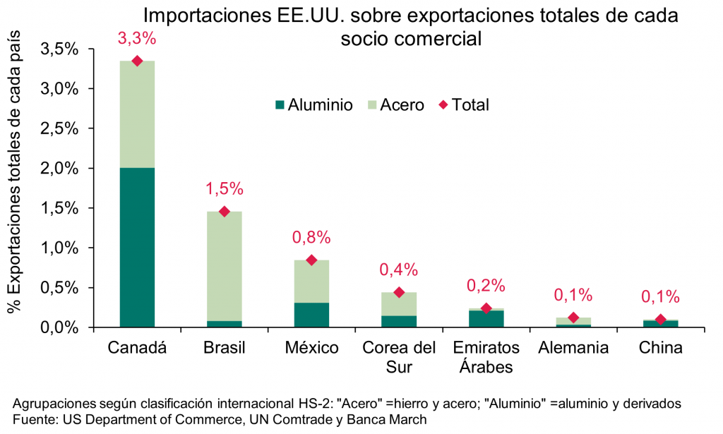 Trump amenazó con duplicar los aranceles al acero y aluminio de Canadá al 50% en respuesta a un impuesto sobre la electricidad del 25% que Ontario planeaba imponer a Estados Unidos. Sin embargo, posteriormente el Presidente se retractó y mantuvo el 25% tras la suspensión de la medida canadiense. Los aranceles estadounidenses sobre el acero y el aluminio entran en vigor sin exenciones. De esta forma, la Unión Europea planea restaurar las contramedidas de 2018 y 2020 que entrarán en vigor en abril, apuntando a aranceles por valor de 26.000 millones de euros de exportaciones estadounidenses. Los sectores afectados serán, el acero, aluminio, textiles, productos agrícolas y electrodomésticos, además de bienes ya gravados en disputas anteriores, como Bourbon, Harley-Davidson y barcos.