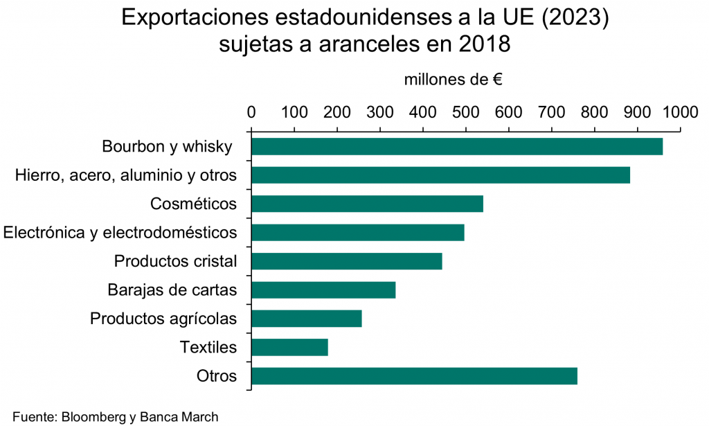 “La Comisión ha lanzado una respuesta proporcionada, diseñada para defender los intereses de los europeos”, asegura Bruselas. Esa respuesta consiste, por un lado, en la reimposición de las contramedidas de 2018 y 2020, que entrarán en vigor el 1 de abril, afectan a todo tipo de productos, desde barcos al bourbon pasando por las motos o la carne. Por otro lado, Bruselas ha añadido nuevas contramedidas, “dado que los nuevos aranceles de Estados Unidos son significativamente más extensos”, afectarán a productos por valor de 18.000 millones de dólares. La suma total de los dos tipos de contramedidas suma 28.000 millones de dólares aproximadamente. Durante dos semanas Bruselas abrirá un periodo de consultas con los socios comunitarios para determinar si las contramedidas incluyen a los productos adecuados, se quiere evitar cualquier tipo de disrupción en la cadena de suministros de las empresas europeas y que los consumidores europeos se vean perjudicados. En abril el proceso de consultas se cerrará y la lista de productos estadounidenses afectados por las contramedidas comunitarias será definitiva, por lo que entrará en vigor a efectos prácticos.