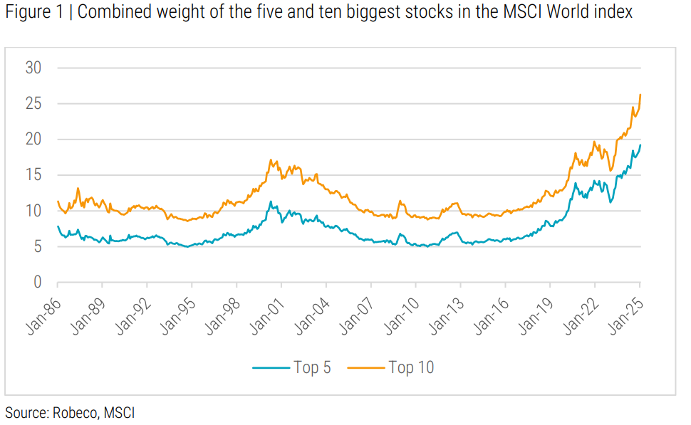 Además, esta Administración ha aumentado los riesgos del mercado de valores. Antes de que Trump llegara al poder, el S&P 500 ya se encontraba en múltiplos de valoración y niveles de concentración históricamente altos, con la capitalización de mercado de las 10 empresas más grandes en máximos de varias décadas.