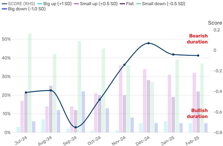 Después de lidiar con estos indicios que apuntan a una estanflación, los mercados tienen dudas sobre el crecimiento debido a un brote significativo de volatilidad de la política estadounidense. La incertidumbre asociada a los aranceles intermitentes sobre los principales socios comerciales y aliados de Estados Unidos, como Canadá y México, se ha visto agravada por la preocupación sobre el impacto en el empleo y los ingresos de los recortes del sector público.