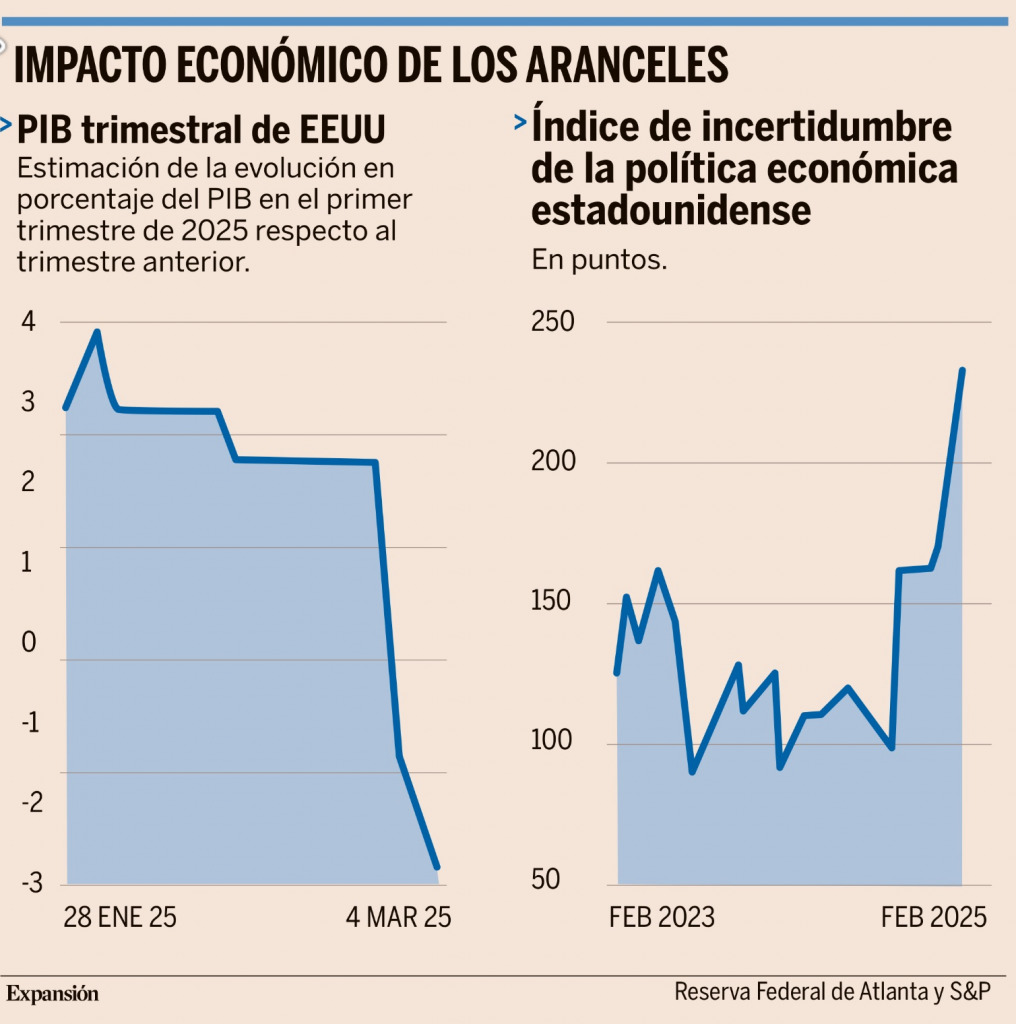 A continuación vienen las empresas. Las normas arancelarias y aduaneras intermitentes, la mayor volubilidad en la formulación de políticas y los problemas de los consumidores son una combinación potente. Los aranceles de importación aumentarán los costes, y las medidas de represalia ahogarán las ventas internacionales. Pero la incertidumbre radical también impide que las empresas hagan planes y se adapten.