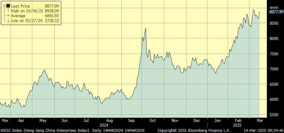 Mientras tanto, China ha mostrado su intención de adoptar una combinación más potente de estímulos y reformas. Los mercados consideran que esto es fundamental para contrarrestar la creciente amenaza de la japonización de la economía china, que volvió a ponerse de relieve en los datos del domingo, con las caídas de los precios al consumidor y al productor del pasado febrero.