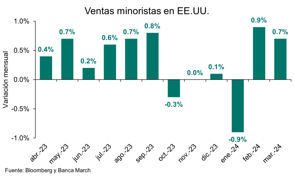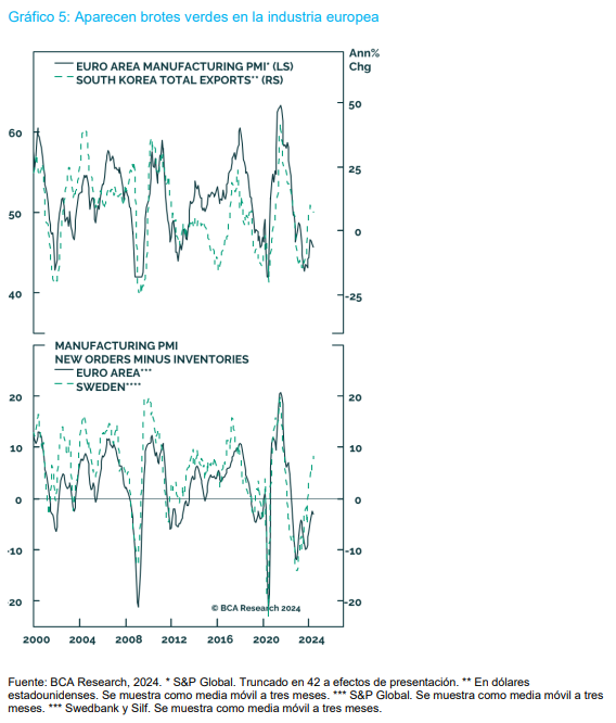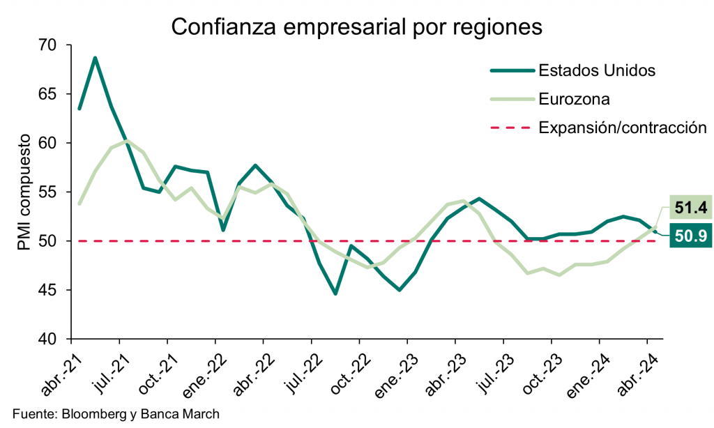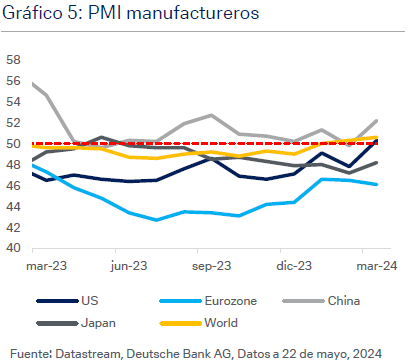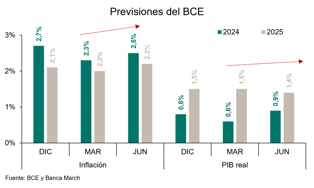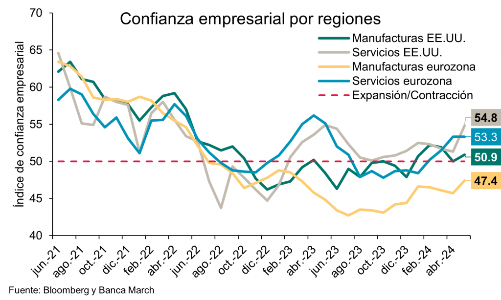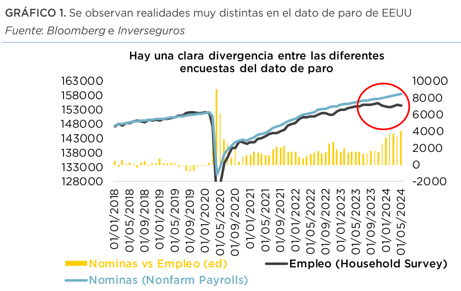 También en Estados Unidos, la revisión final del PIB del 1T24 deja pocas novedades en término de la tasa general, que avanza un +1,4% trimestral anualizado, una décima por encima del dato preliminar. Lo más destacado vino por el lado de los componentes, con un consumo privado menos dinámico al crecer un +1,5% trimestral anualizado frente al +2% publicado anteriormente. Con este dato, la contribución del consumo privado al PIB se situó en un 1%, que si sumamos a la contribución de la inversión (1,2%) y del gasto público (0,3%), observamos que la demanda interna de la economía estadounidense aportaría un crecimiento del +2,5%. Por el lado negativo, los inventarios (-0,4 p.p.) y el sector exterior (-0,65 p.p.), fueron los componentes que detrajeron crecimiento e impidieron un mayor dinamismo del PIB en los primeros meses del año. Por otro lado, las peticiones de subsidio por desempleo publicadas ayer se situaron en la última semana en 233 mil desde las 239 mil previas, alcanzando las solicitudes continuas su mayor nivel desde 2021. También fueron débiles los pedidos de bienes duraderos que aumentaron un +0,1% mensual frente al +0,2% anterior (dato revisado a la baja) y, si retiramos los componentes más volátiles como gasto en defensa y aviones, los pedidos de bienes duraderos registraron una contracción inesperada al caer un -0,6% mensual. En el sector inmobiliario, las cifras de ventas pendientes de vivienda retrocedieron nuevamente en mayo al caer un -2,1% mensual, confirmando que los elevados tipos de interés hipotecarios están frenando las transacciones.