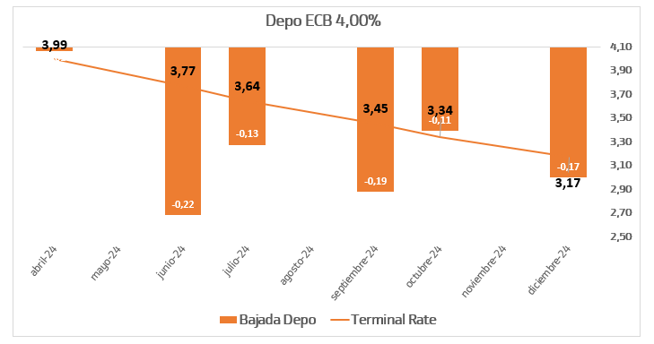 Olli Rehn, Gobernador del Banco de Finlandia, y miembro del Banco Central Europeo, hacía unas declaraciones esta semana en las que considera que las expectativas del mercado de 2 recortes adicionales en 2024 son «razonables», y que un nivel de llegada entre el 2,25-2,50% es «justo». Añadió que las acciones en materia de política monetaria deberían ser posibles en cualquier reunión