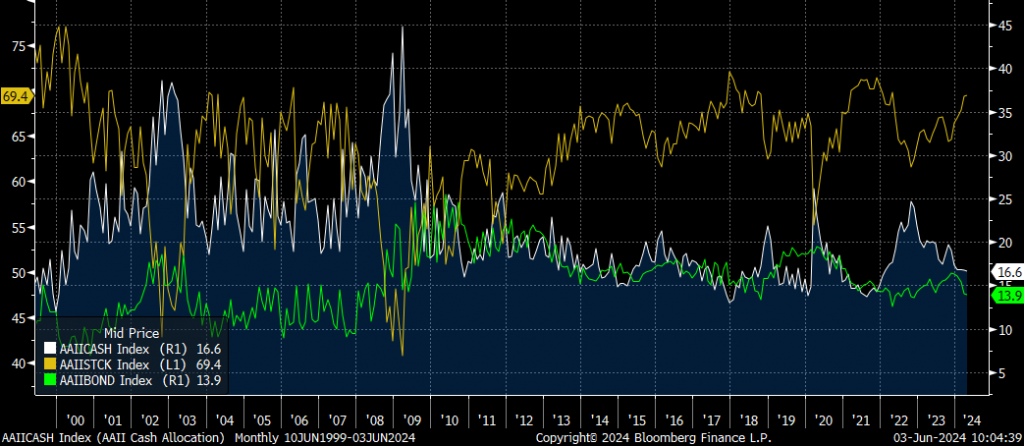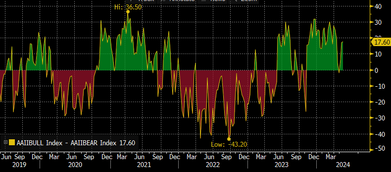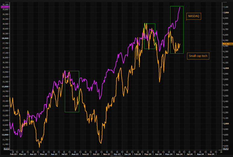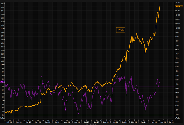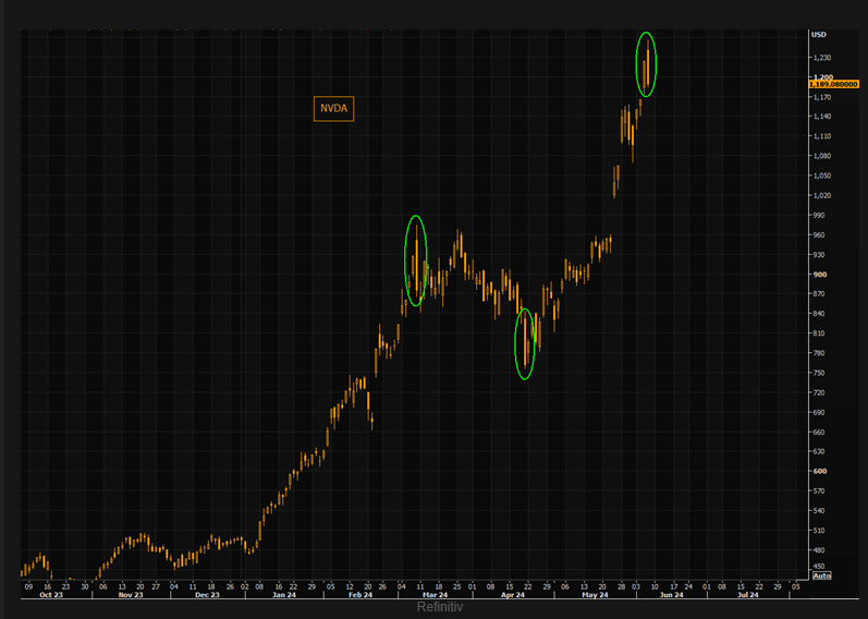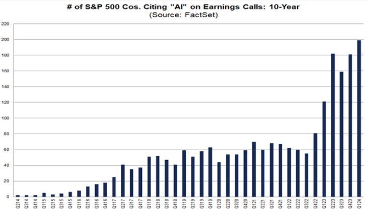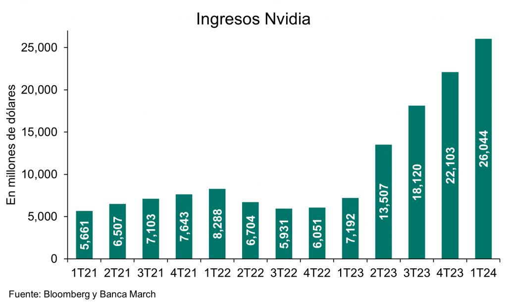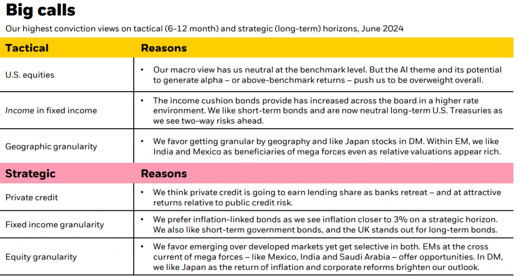 Varias gestoras grandes siguen muy positivas en la narrativa de Inteligencia Artificial, y por tanto en Bolsa americana, esta semana en su comentario semanal Blackrock (https://www.blackrock.com/corporate/literature/market-commentary/weekly-investment-commentary-en-us-20240624-sticking-with-us-tech-surge.pdf) dicen que sigue positivos en renta variable de Estados Unidos para los próximos 12 meses, desde un punto de vista táctico, y en Inteligencia Artificial como tema. Consideran que las compañías tecnológicas seguirán batiendo estimaciones en ingresos y seguirán liderando el mercado en términos de márgenes sobre beneficios.