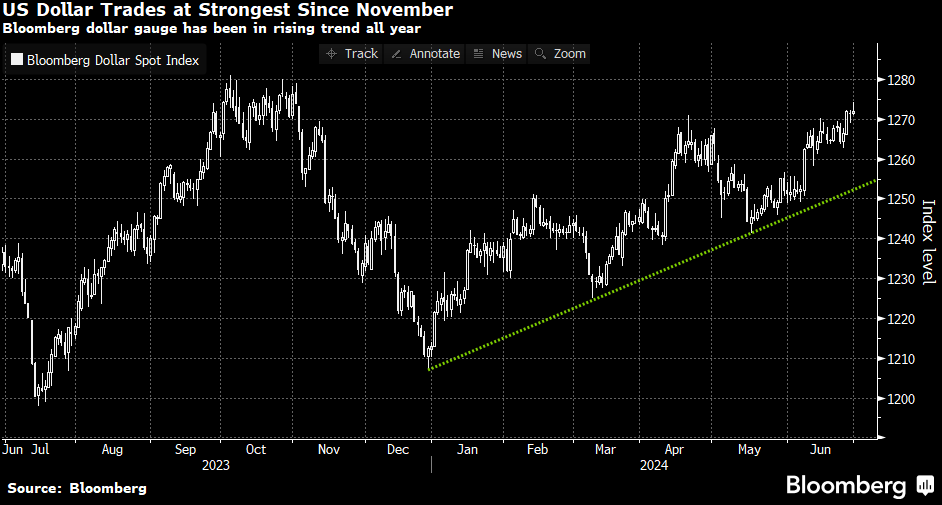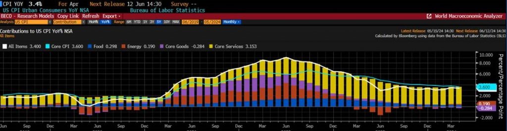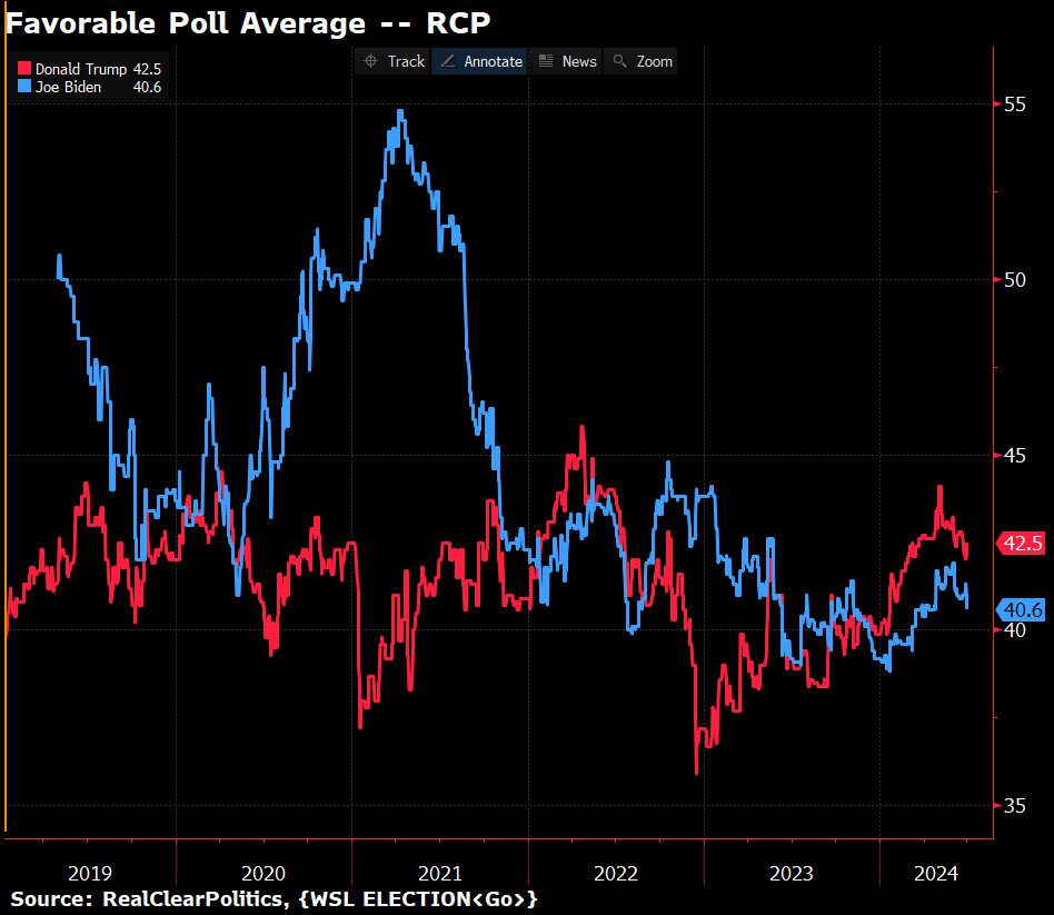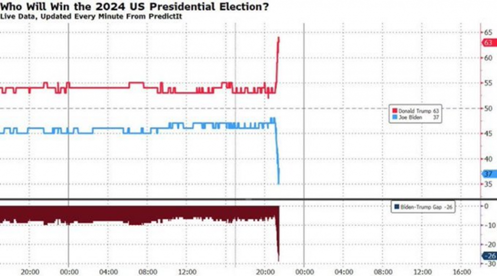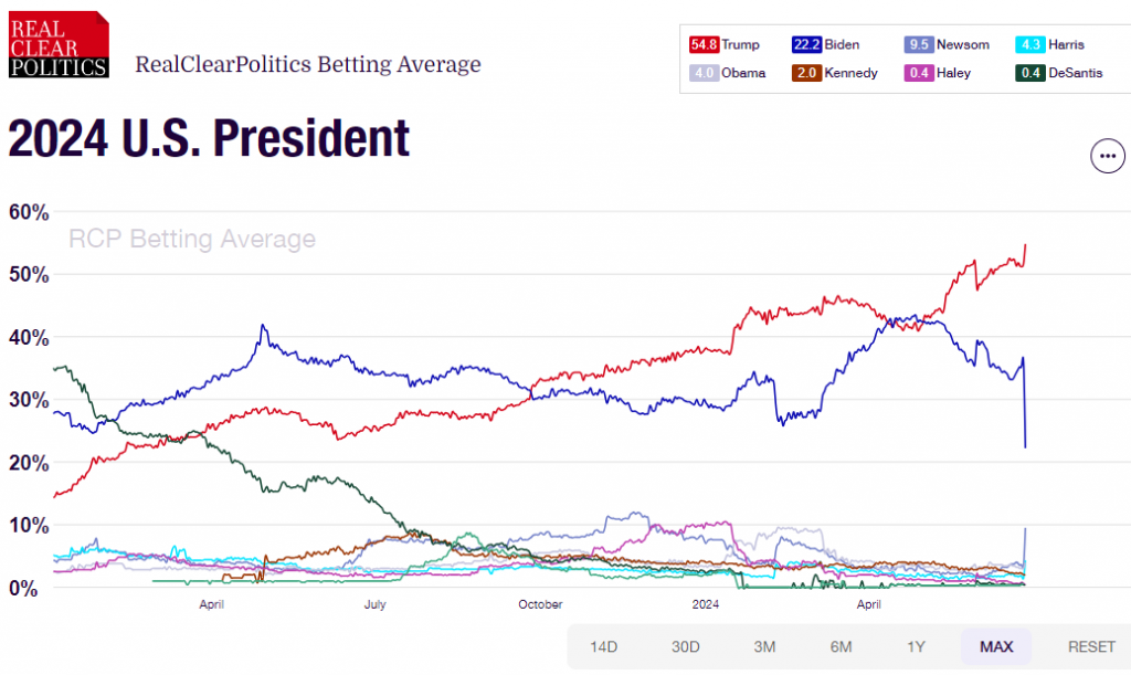 Estas semanas están protagonizadas por los eventos políticos, anoche debate presidencial americano, este fin de semana primera vuelta de las elecciones francesas, la semana que viene elecciones en Inglaterra… Anoche en Estados Unidos fue el debate televisivo organizado por la CNN entre Biden y Trump, en el que se observó un candidato demócrata débil y en numerosas ocasiones perdido. De hecho, según el Financial Times, los demócratas piden al presidente que detenga su candidatura a la reelección. Por su parte, Trump se mostró agresivo acusando a China de «matarnos como país» y diciendo que los términos de Putin para poner fin a la guerra de Ucrania no son aceptables. Según una encuesta elaborada por la CNN, el 67% de los encuestados considera que Trump ganó el debate. La intención de voto a Biden se ha desplomado, y las probabilidades que dan las casas de análisis a que gane un segundo mandato han caído del 48% al 37%. (https://www.realclearpolling.com/betting-odds/2024/president).