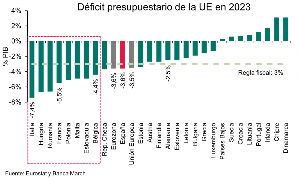 En el mejor de los casos, un Parlamento dominado por los extremos políticos sumiría a Francia en un periodo de inestabilidad prolongada. En el peor, llevaría a la adopción de políticas derrochadoras y nacionalistas que desencadenarían en una crisis económica y social en Francia. La crisis francesa se convertiría rápidamente en un problema de la UE. Habría dos mecanismos principales de transmisión. El primero, a nivel fiscal y, el segundo, a nivel diplomático.