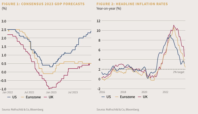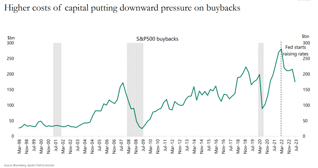 Los europeos se han visto más afectados por las recientes subidas de tipos que los estadounidenses porque tienen más hipotecas y otros préstamos a largo plazo con tipos variables. Ahora, al haber absorbido gran parte del dolor del ajuste monetario, Europa se enfrenta a menos dolor en el futuro que EEUU. Además, los billones de ahorro acumulados por los consumidores durante la pandemia prácticamente se han agotado en EEUU, pero siguen creciendo en Europa.