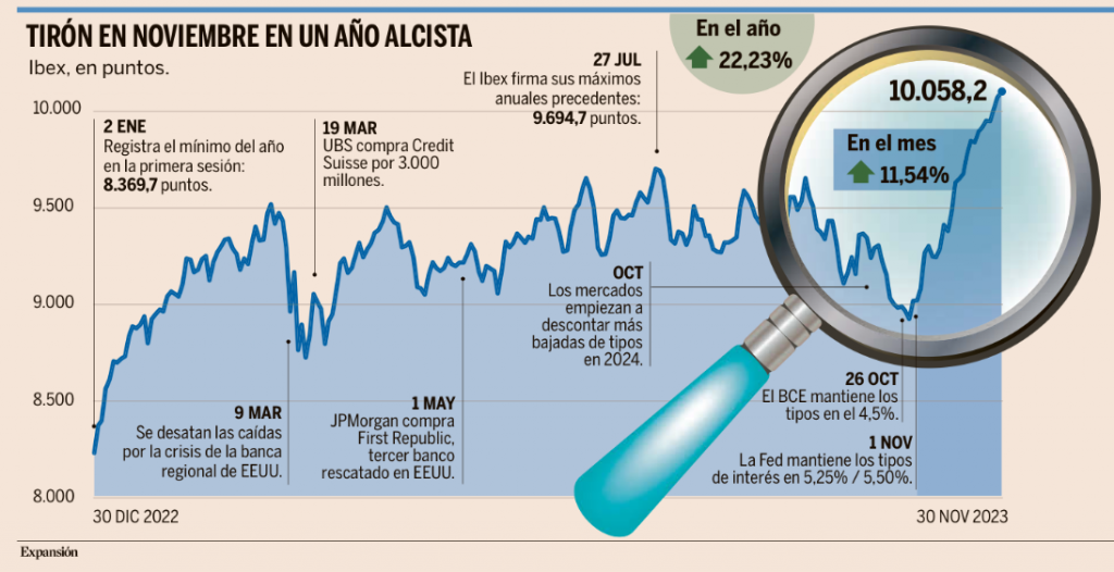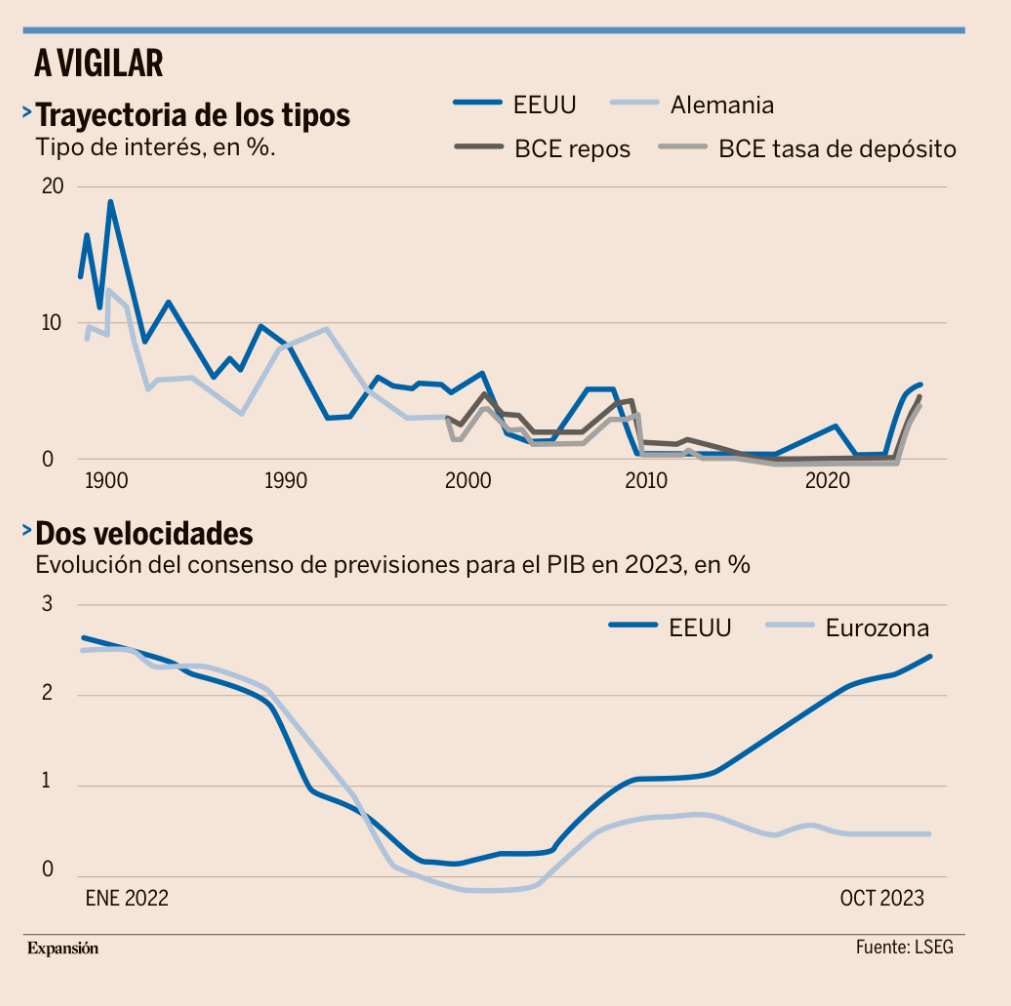 Esta semana se publicaba un informe interesante sobre lo que serán los cinco focos para los mercados en 2024. Los activos de riesgo de Estados Unidos vivieron un 2022 terrible, y 2023 un año estupendo. No sabemos lo que ocurrirá en 2024, pero hay algunas ideas sobre cuáles serán probablemente los factores determinantes para los mercados. Estas ideas se resumen en cinco preguntas.