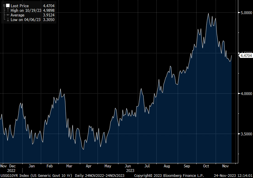 ¿Qué pasará con el rendimiento de los bonos de largo plazo? No deja de sorprender hasta qué punto el debate sobre las rentabilidades de los bonos del Tesoro a 10 años gira en torno a las expectativas políticas a corto plazo. Pero pase lo que pase con el crecimiento y la inflación en 2024, hay un debate sobre si las rentabilidades del 2% que prevalecieron entre la crisis financiera y la pandemia fueron una anomalía histórica o un estado normal al que estamos volviendo rápidamente. Si los tipos a corto plazo siguen bajando y los tipos a largo se mantienen en torno al 4%, estaremos en un mundo nuevo.