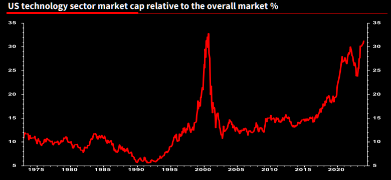 Se trata de un síndrome familiar: una nueva innovación entusiasma a los inversores, que invierten dinero en cualquier empresa vagamente relacionada con esa innovación, hasta que se dan cuenta de que la mayoría no ganará dinero con ella en el corto plazo. Esto sucedió en la era de la burbuja informática y está sucediendo ahora. Las expectativas de ganancias para 2024 de las siete grandes ya se están fracturando: aumentan rápidamente para Nvidia, apenas para Apple, y se reducen para Tesla.