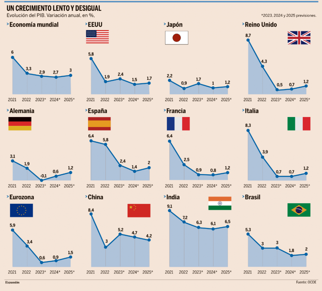 Una cuestión secundaria interesante es si la política fiscal y monetaria apoyará especialmente el crecimiento económico este año, dado que en la mayoría de los países democráticos habrá elecciones próximamente. Muchos expertos sostienen que los políticos harán todo lo posible para que los ciudadanos lleguen contentos a las urnas. Pero los tipos de interés siguen siendo altos y hay gobiernos que se empeñan en endurecer la política fiscal. ¿Cuántos estímulos pueden darse realmente este año?