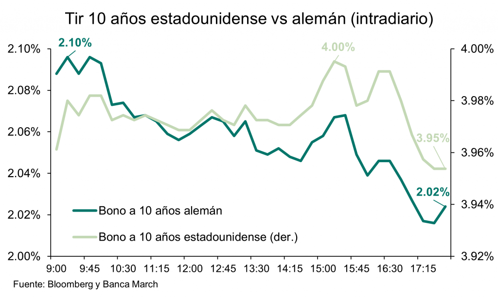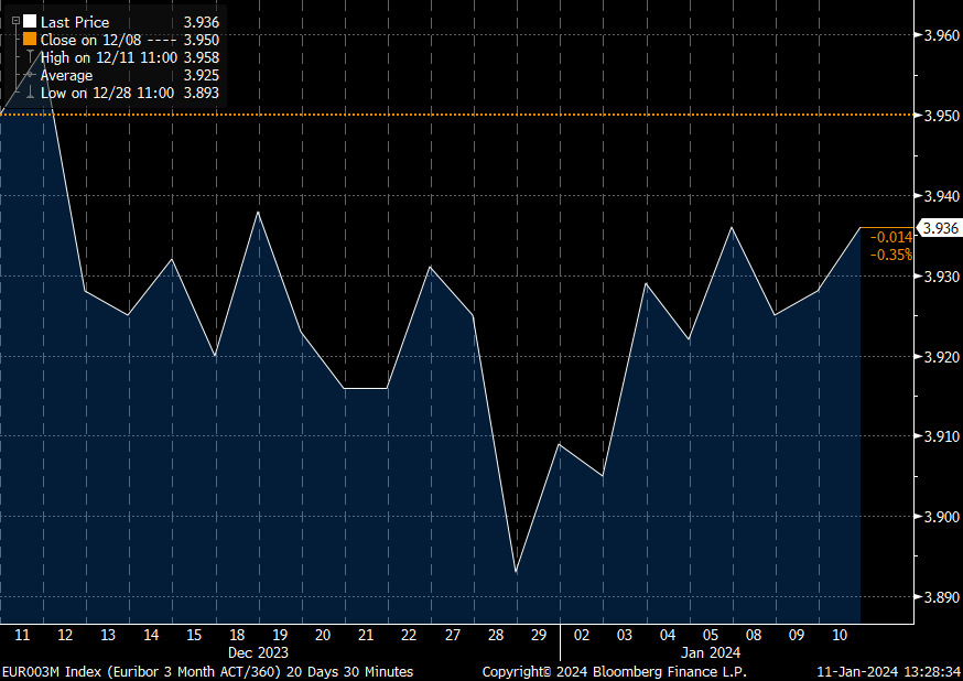 En Europa han pasado bastante desapercibidas las declaraciones de una de las principales miembros del Consejo del Banco Central Europeo esta semana, Isabel Schnabel, que señaló que todavía era muy pronto para empezar a hablar de recortes de tipos, algo que debería enfriar las expectativas del mercado y debería plantear serias dudas sobre la elevada probabilidad de acción que el mercado asigna a la reunión de marzo, algo que sería perfectamente extrapolable a la de abril. Al mismo tiempo, Schnabel valoró que es factible que el tipo de interés neutral se encuentre por encima de los parámetros que prevalecían antes de la pandemia. De ser así, la política monetaria que estaría aplicando el BCE en estos momentos sería algo menos restrictiva de lo pensado en un principio y, si bien parece complicado que pueda promover un cambio brusco en la estrategia del Banco Central, sí podría justificar algo más de tiempo para ver las primeras bajadas de tipos. Los comentarios de Schnabel hicieron que el Euribor bajara nuevamente y apoyaron al euro que ha vuelto a niveles cercanos al 1,10 dólares por euro.