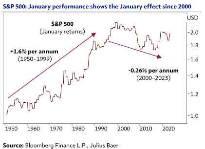 Como dato curioso Enero solía ser un buen mes bursátil ya que durante los últimos 50 años del siglo pasado, la rentabilidad media del S&P 500 fue del +1.6% durante dicho mes, sin embargo, esa pauta histórica ha desaparecido completamente desde el comienzo del siglo 21, con la rentabilidad media durante el mes situándose en un decepcionante -0.26%.