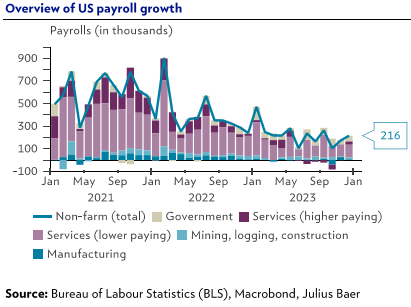 En Estados Unidos el mes de diciembre sorprendió con la creación de muchos más puestos de trabajo de lo esperado (216.000), si bien otros datos estadísticos siguen apuntando hacia un menor dinamismo. En cualquier caso, refuerza la convicción de varios analistas de que veremos 3 bajadas de 0,25% en los tipos de interés por parte de la Reserva Federal este año, empezando en mayo, frente a los 5 bajadas que está descontando el mercado.